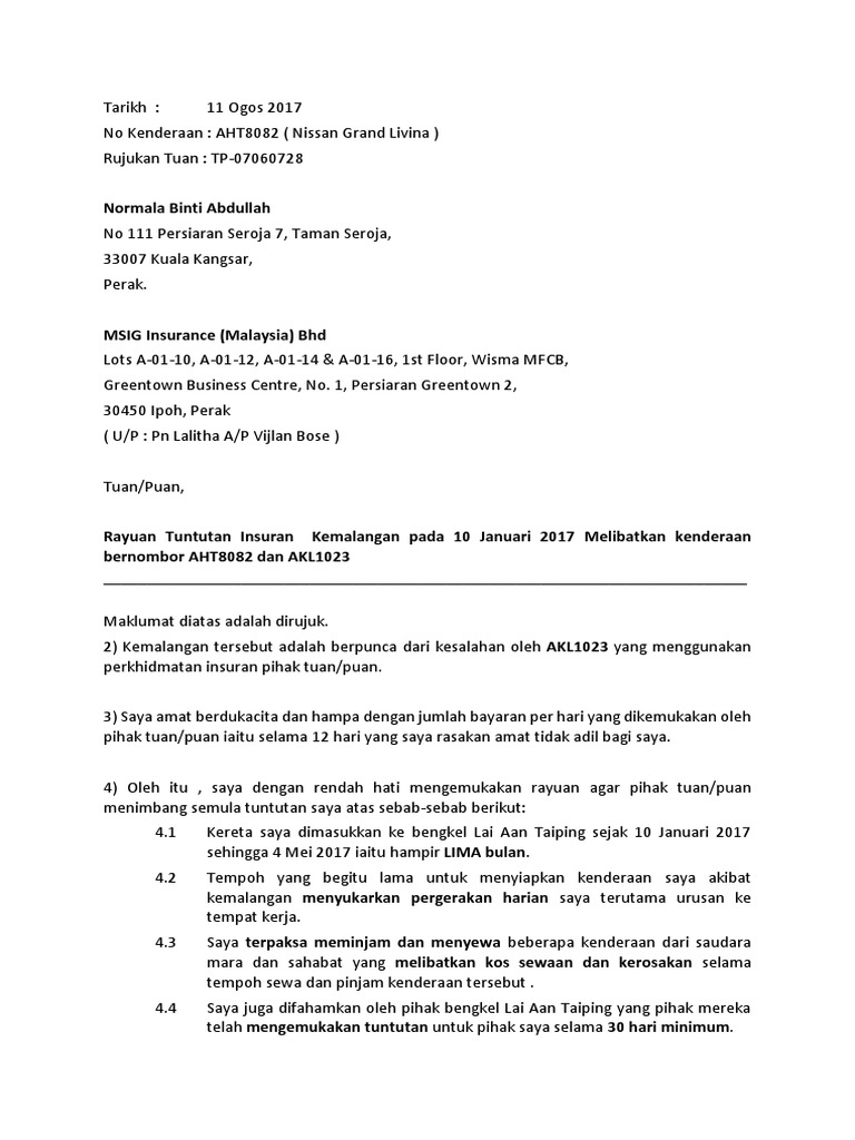 Contoh surat rasmi claim insurans surat rasmi d. Contoh surat tuntutan insurans kenderaan contoh surat. Contoh surat rayuan tuntutan insurans kereta.